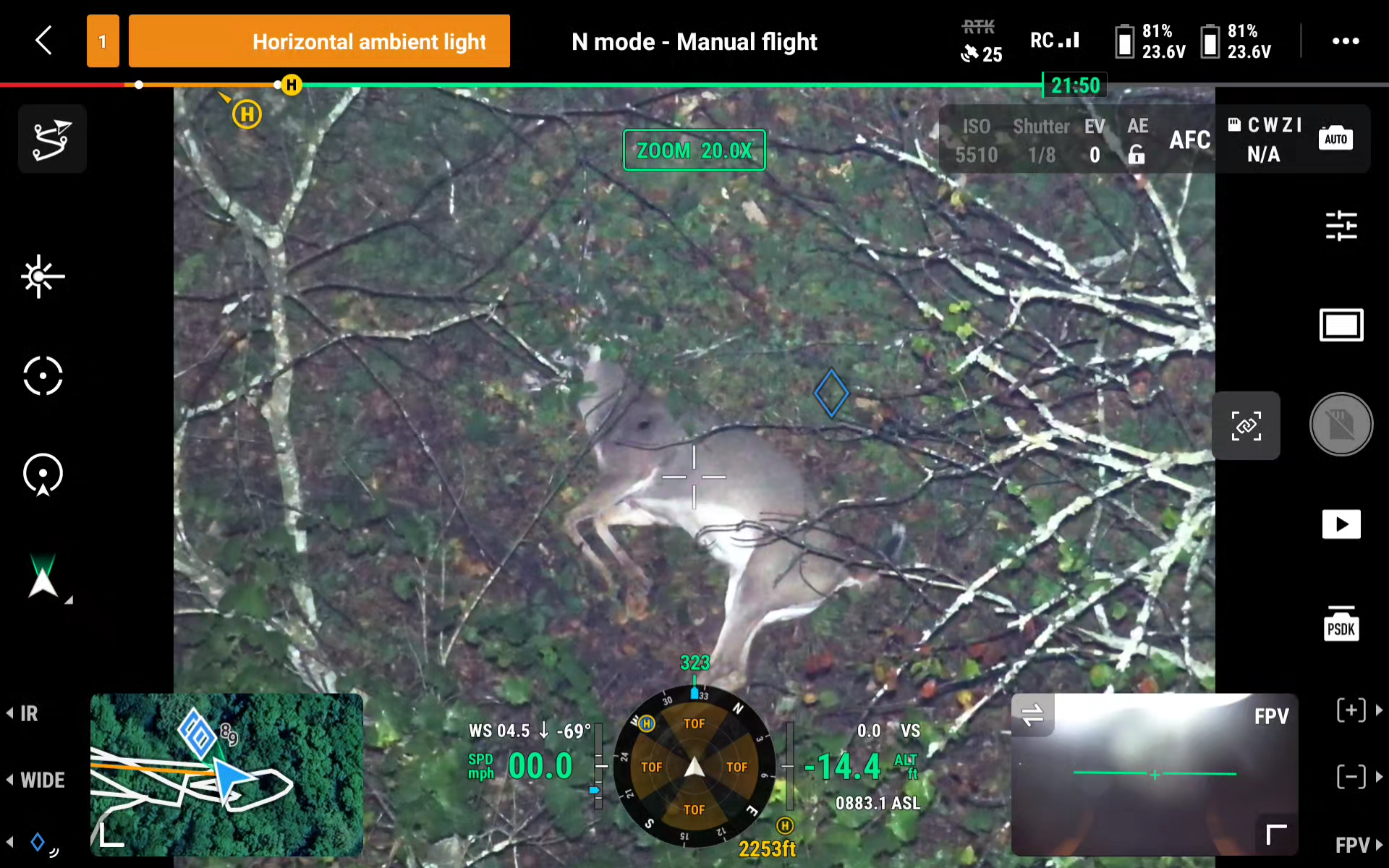 Tracking a wounded or downed deer can be incredibly difficult—especially at night or in dense cover. Our DJI Matrice 30T drone is equipped with high-resolution thermal imaging that allows us to detect body heat, even in total darkness or thick brush. Whether you’ve got a blood trail or no trail at all, we offer:
